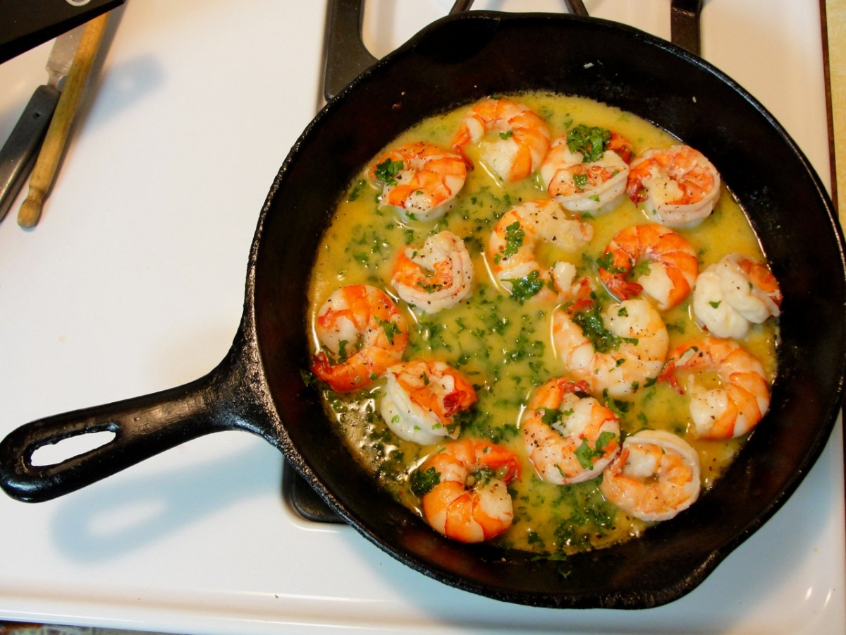 NOTES: If you use small or medium-sized shrimp, reduce the cooking time a little. For the wine we usually use sauvignon blanc, but a Chardonnay or dry vermouth would also be okay.